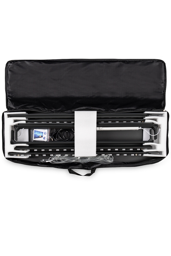 Hele systemet samles uden værktøj og leveres i en praktisk kartonæske med ruminddeling. Transporttasken (ekstra tilbehør) giver endnu bedre beskyttelse og komfort – den medfølgende inddeling kan flyttes direkte over i tasken. Du kan finde transporttasken her: Transporttaske til LED Lightbox Display – den medfølgende inddeling kan flyttes direkte over i tasken.