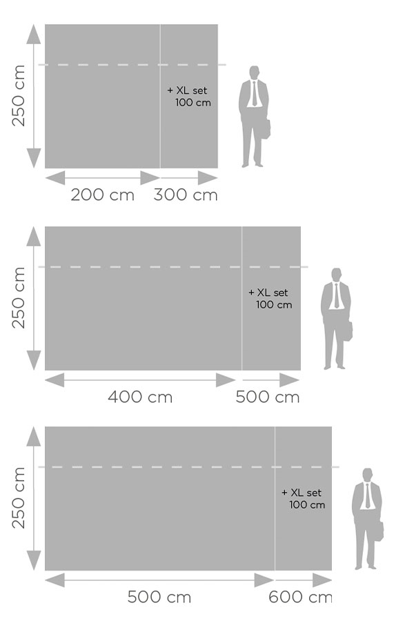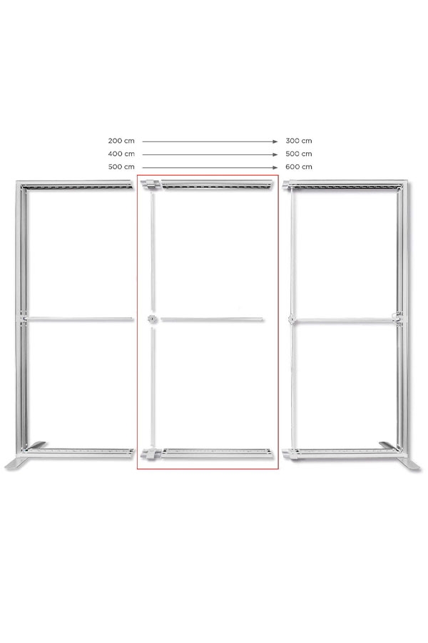 Med et Extension Kit kan du forøge bredden med 100 cm. på Display LED Lightbox Build 200 x 250 cm, 400 x 250 cm. og 500 x 250 cm. Bemærk at der kun kan udvides med 1 Extension Kit.