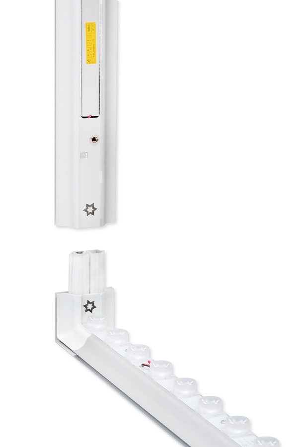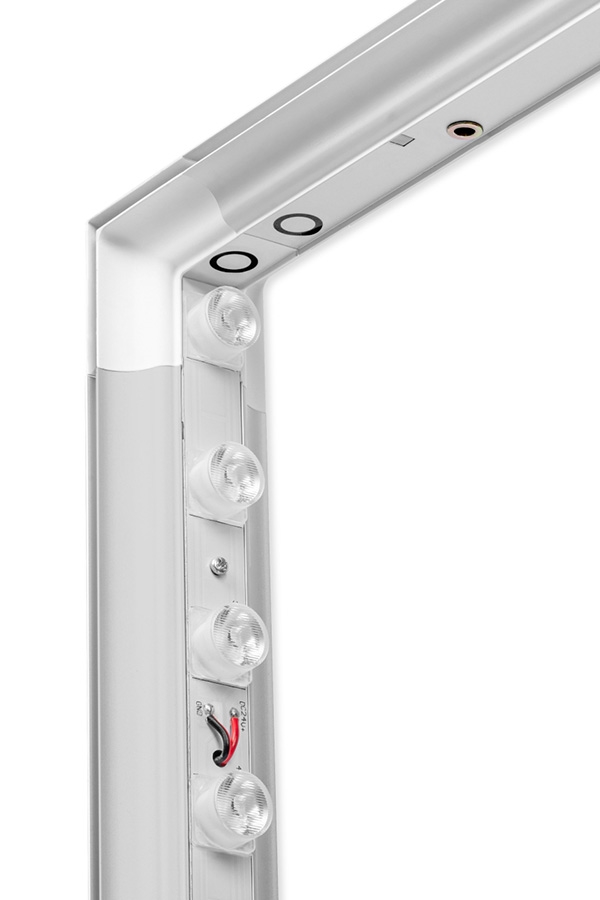 LED Lightbox er forsynet med magneter på siden. Dermed kan man samle flere Display LED Lightbox til en større væg. Der medfølger 4 samleklips i klar akryl som kan benyttes til at stabilisere samlingen. Såfremt man ønsker at opstille LED Lightboxes i retvinkel til hinanden kan der tilkøbes et beslag til dette via dette link.