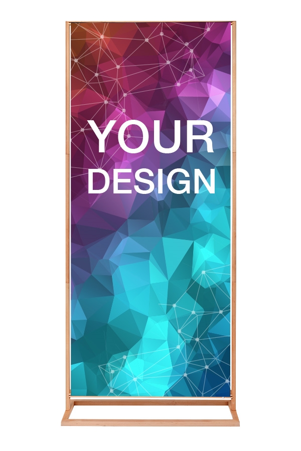 Den højkvalitets stofgrafik giver levende, farvemættede print og skaber blikfang ved enhver præsentation. Med 100 % genanvendt PES-keder på de korte sider kan du hurtigt udskifte din grafik efter behov. Fastgør blot grafikken i bunden med de medfølgende kiler, og du er klar. Uanset om du bruger Wood Display til udstillinger, events, kampagner eller hospitality-miljøer, får du en elegant og bæredygtig løsning.